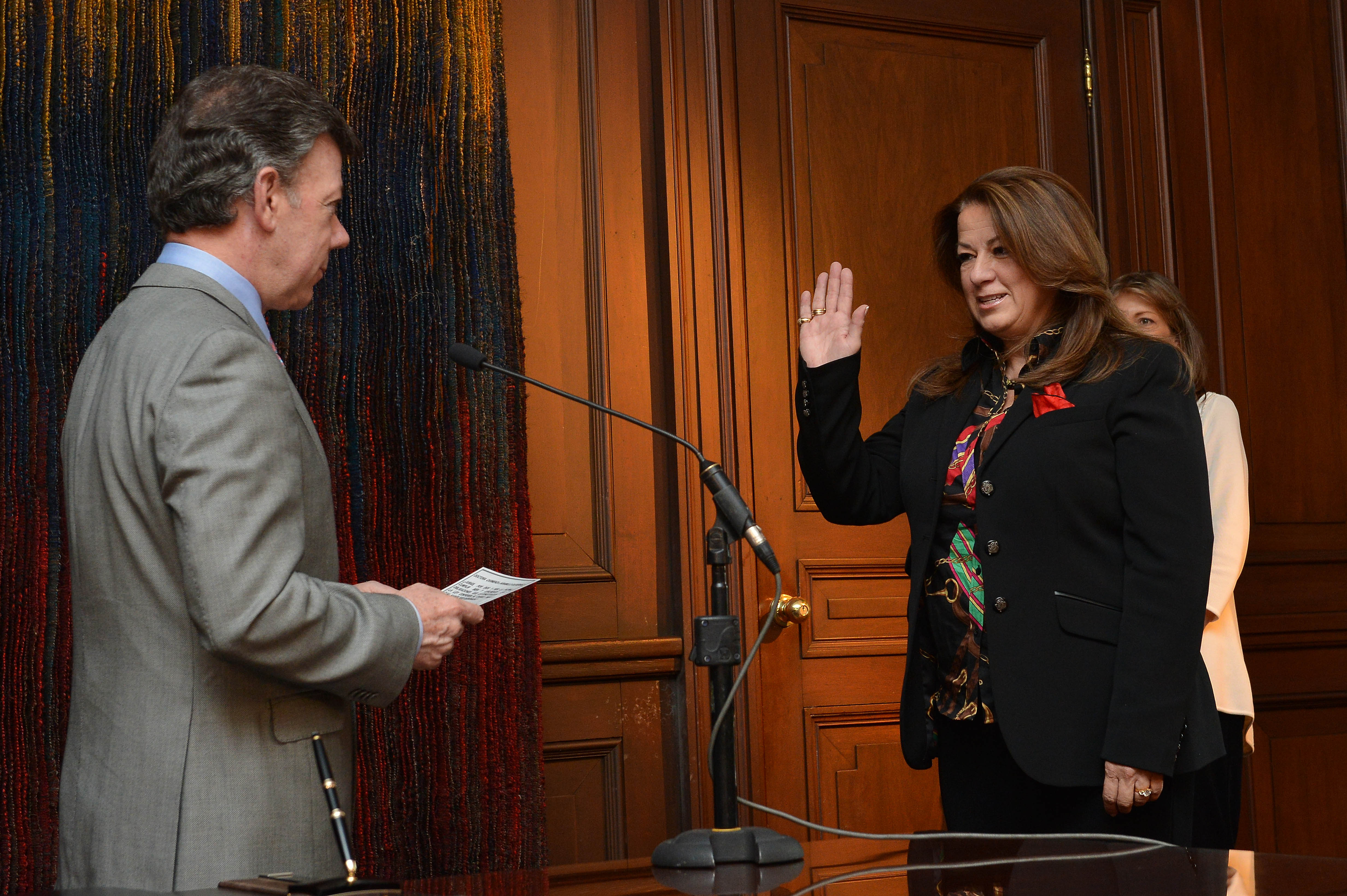 Durante el acto protocolario, el presidente Juan Manuel Santos resaltó el liderazgo que ha tenido la supieña en sus anteriores cargos como embajadora en la India, cónsul en Miami, y su último trabajo como directora de Proexport.