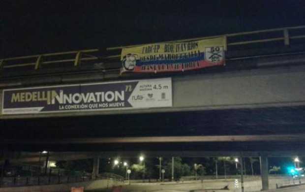 Dos pancartas con iconografía de las Farc fueron instaladas en diferentes puntos de la ciudad en la madrugada de este lunes.
