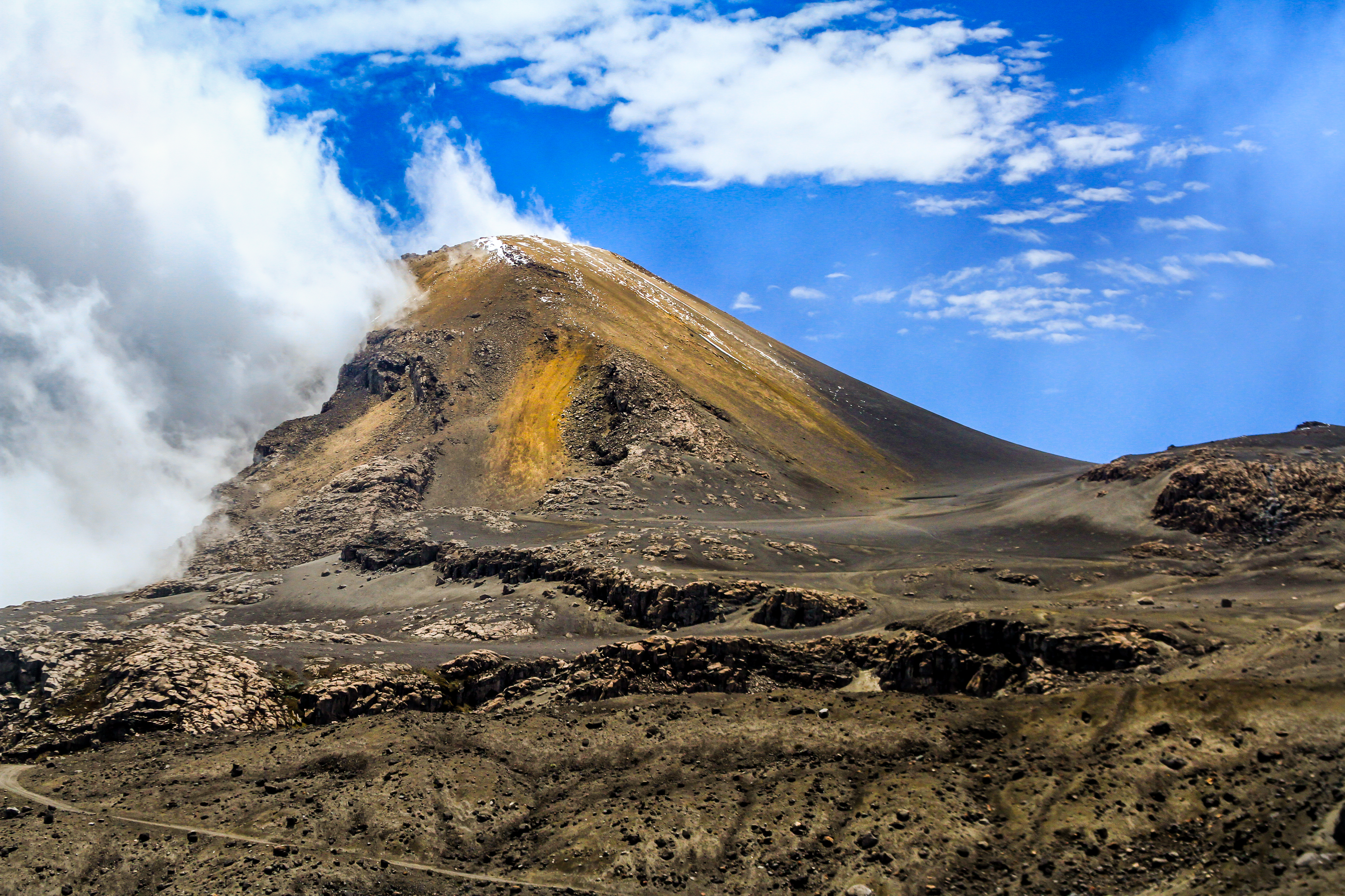 Cara Norte del volcán nevado del Tolima, visto desde la parte baja de Villa Restrepo en el sector del cañón del río Combeima.