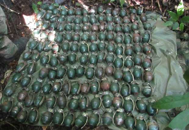 Finalmente, se informó que en la últimas horas, el Batallón de Combate terrestre 38, logró el hallazgo de una caleta del frente 38 de las Farc, que contenía 140 granadas de mano, dos minas antipersona y 15 kilos de explosivos, al parecer R1. El hecho tuvo lugar en la vereda San Luis del municipio de Pisba, Boyacá.