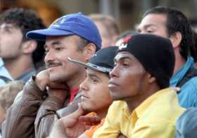 Un grupo de migrantes cruza la frontera en entre Venezuela y Colombia sobre el Puente Internacional Simón Bolívar que une a La P