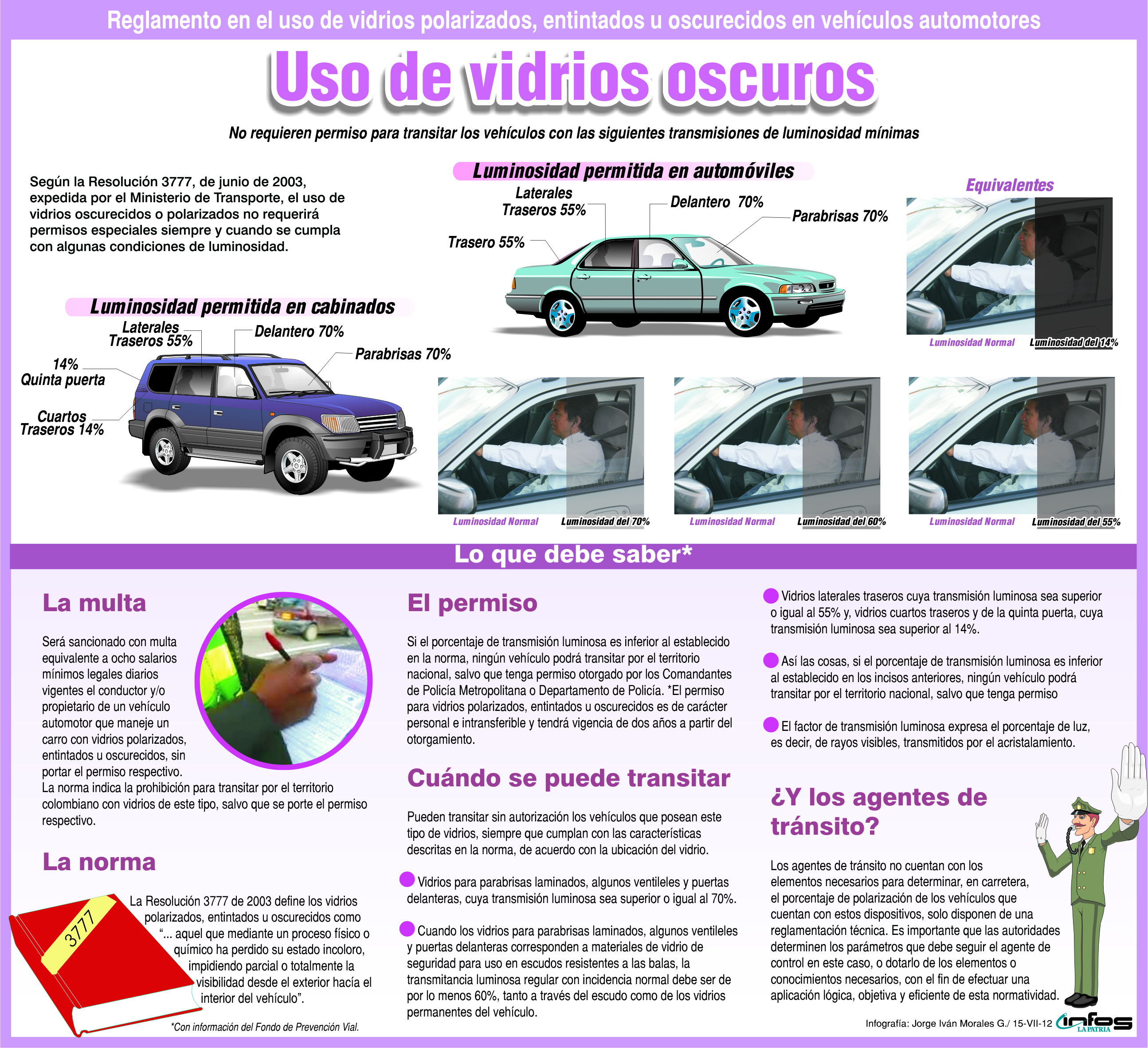 Por eso LA PATRIA entrega hoy algunas recomendaciones sobre cuándo se pueden oscurecer los vidrios y qué se necesita para obtener el aval de las autoridades (ver infográfico).