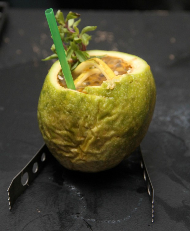 El Fussion Cóctel tiene maracuyá, ron, limón y un jarabe de canela y piña.