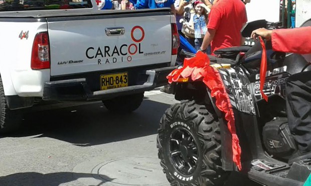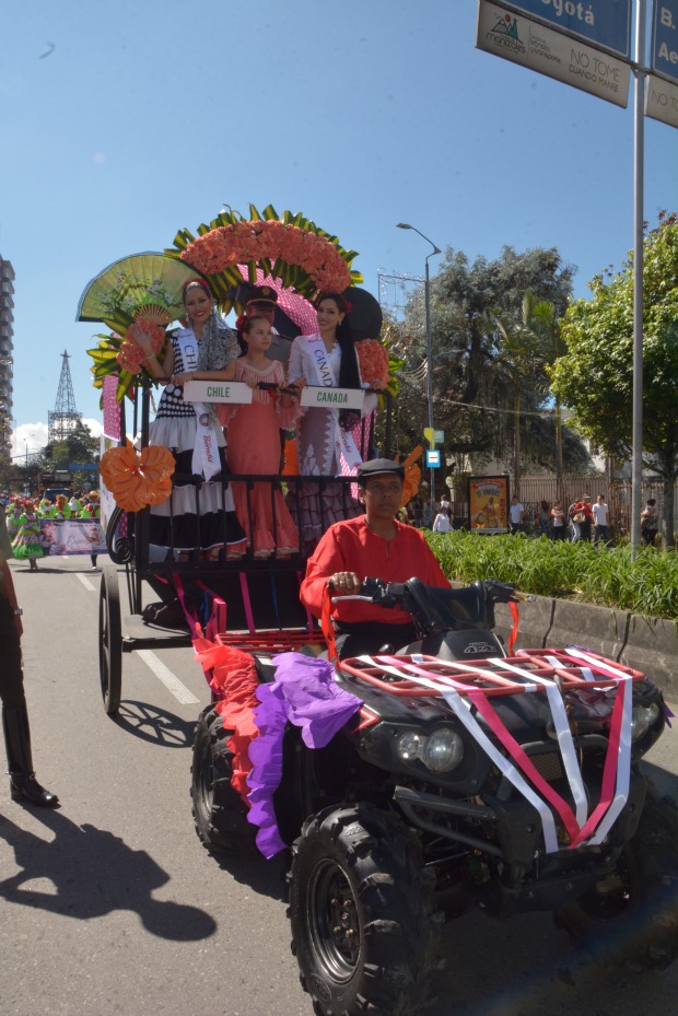 * La cuatrimoto de Bolivia y Brasil se varó en la mitad del desfile, lo que ocasionó un retraso de una hora. El carro de Caracol Radio las salvó y arrastró su carreta con cuatrimoto hasta el final del desfile.