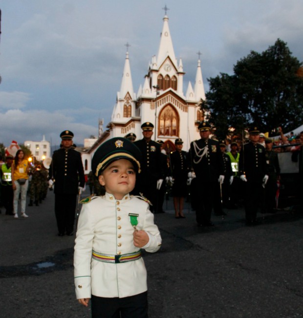 Juan Diego Toro Angarita, de 3 años, se robó más de una mirada de los asistentes con su uniforme de gala número uno, que utilizan los militares en climas calientes.