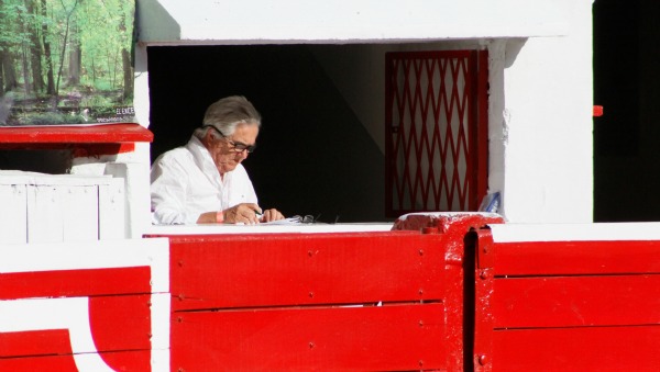 El ganadero de ayer, Jorge Gutiérrez, en su palco consultando sus notas. Preocupado por el desempeño de sus toros. Con inmensas dudas sobre la bravura de sus ejemplares. También es cierto que sus toros siempre han necesitado lidiadores para extraerles todas sus cualidades. Su honestidad lo hará reflexionar a profundidad.