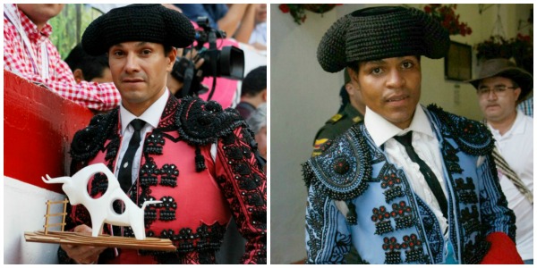 Los banderilleros Gustavo García y Carlos Garrido, quienes conquistaron el trofeo LA PATRIA- Andino Home a la mejor ejecución de esta suerte. García ya lo había conquistado pero sólo hasta ayer lo recibió y Garrido fue el triunfador de ayer.