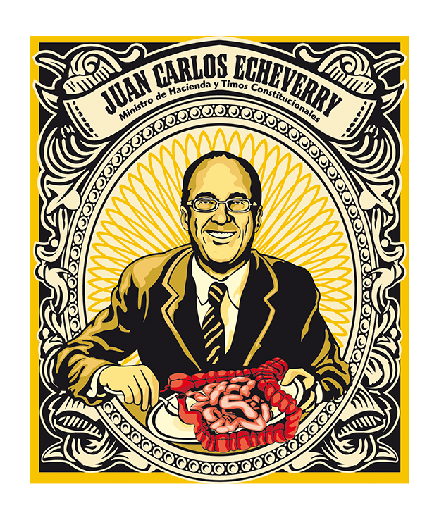 El resto de la noche me convierto en el rehén de un culto de burócratas índigos, que por algún motivo creen que el reformismo redundante es un estilo de vida. Esta particular trinca de funcionarios, que se distinguen por pedir dos codeudores con propiedad al momento de prestar un lápiz, se sumergen en las tribulaciones de un frenético debate sobre cual es la mejor receta encaminada a recuperar el equilibrio karmico del fisco. Todo por vía telepática y sin despeinar ni uno solo de los pelos que escasean en sus alopécicas testas.Para cuando mi ectoplasma busca el teléfono de un cazafantasmas o al menos el de un exorcista, con la intención de practicarme una eutanasia, el iluminado ministro Juan Carlos Echeverry, da por saldada la conversación. Echeverry es un economista de primer nivel en el hemisferio, que alcanzó la popularidad mediática gracias a sus instantáneas tautologías sobre la cantidad adecuada de mermelada que debe salpimentar una papeleta de bazuco.