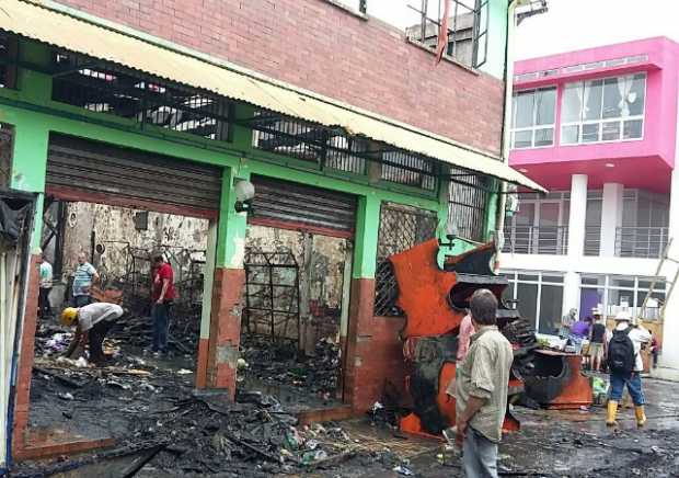 Albeiro Ramírez, el comerciante de Marquetalia que perdió su negocio en el incendio del pasado sábado en la mañana, ayer pensó calculaba más cómo levantarse de nuevo.