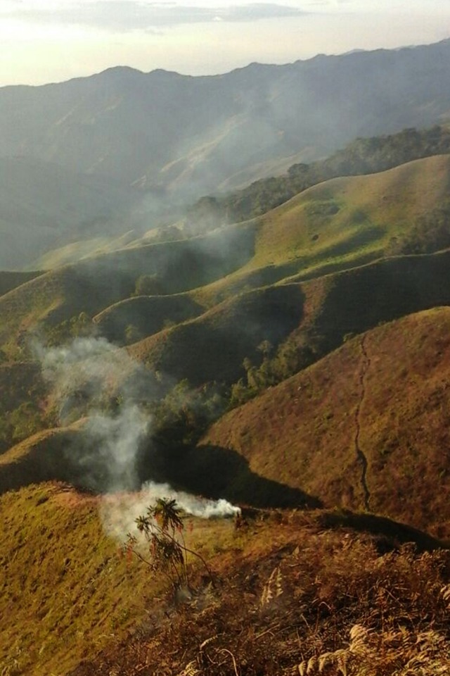El martes pasado a las 11:50 de la mañana, Consuelo Castro, esposa del dueño de la propiedad, dio aviso a Bomberos de Salamina. Después de llegar a San Félix, siguieron por la carretera que va para Marulanda. De esta, las seis unidades de Bomberos con sus equipos, a lomo de mula, cogieron una trocha, para llegar a La María después de 2 horas y 30 minutos de recorrido.