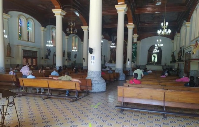 El templo San José reabrió sus puertas desde hace días con los protocolos que exigió el Ministerio del Interior: se llena lista de asistentes, se les toma de temperatura, se desinfectan las manos y el uso del tapabocas es obligatorio. El aforo permitido es del 30% de su capacidad: