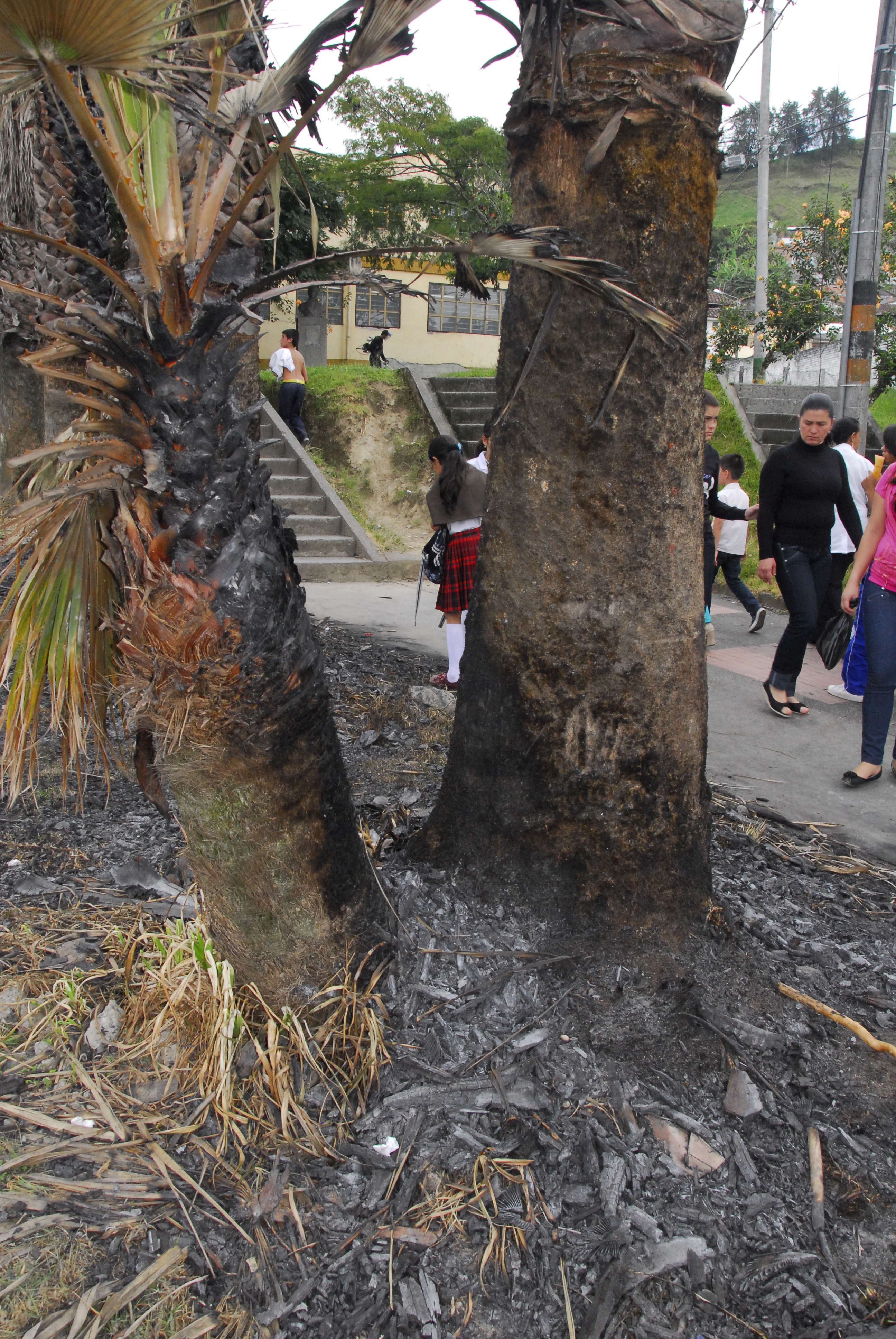 Apenas me vine a enterar esta mañana cuando las vi. Me parece que las personas que incendiaron las palmas deben tener un castigo porque está prohibida la quema de los árboles y de zonas verdes.