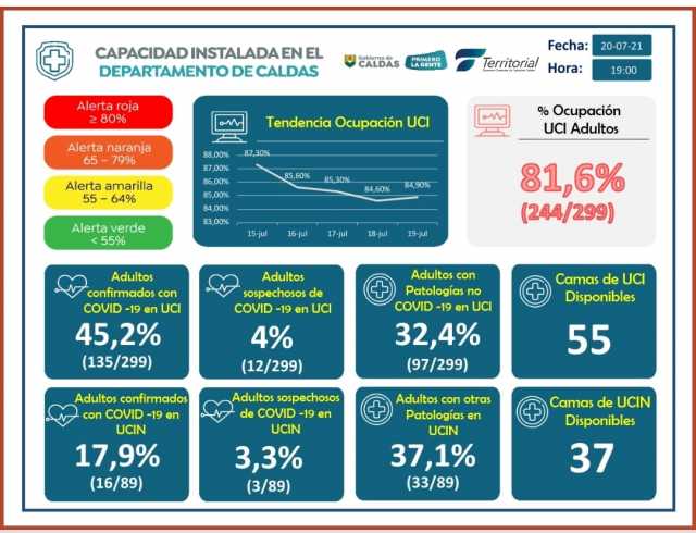 La entidad también informó de 8 personas fallecidas por el virus: 3 en Manizales, 1 en Riosucio, 1 en Anserma, 1 en Neira y 2 en La Dorada. Además 2 personas fallecidas por otras causas en Manizales.