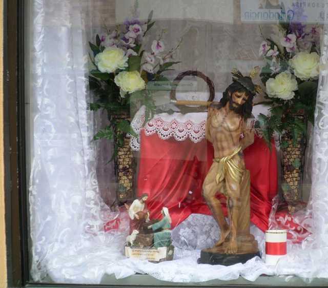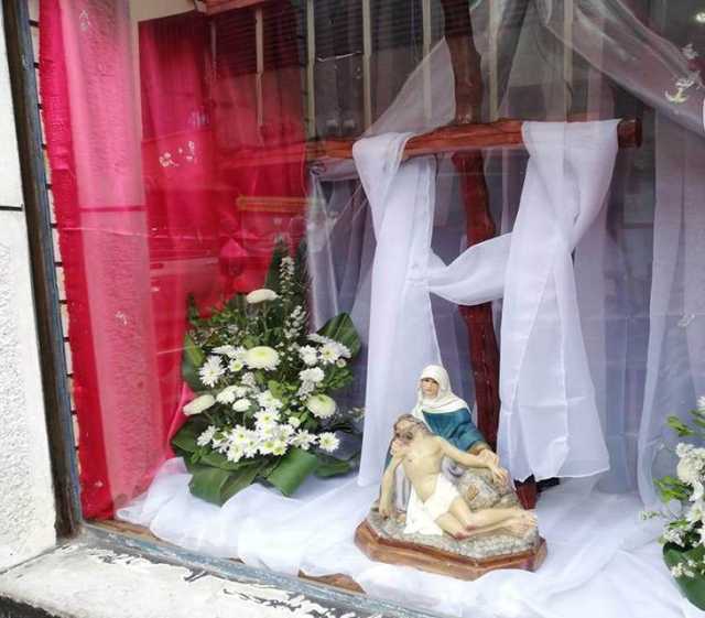 Durante la semana santa en Anserma algunos comerciantes mantienen viva la tradición de adornar sus vitrinas y balcones con imágenes alusivas a la fe católica.