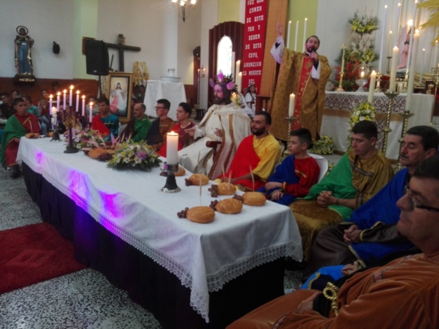 En la última cena en Pácora representaron a los apóstoles conductor, estudiante, agricultor, obrero, empleado, adultos mayores, entre otros. El templo San José se llenó. Organizó la Institución Educativa Elias Mejía Ángel.