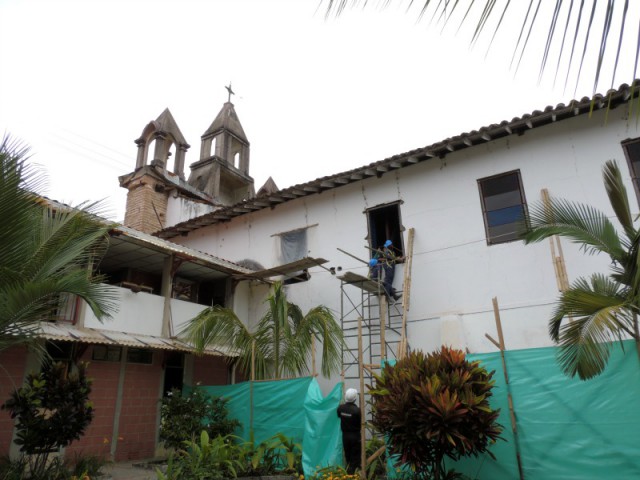 Desde hace un mes trabajan en la capilla 10 estudiantes de la Escuela Taller, del programa en Rehabilitación de Bienes Inmuebles; dos arquitectos y dos monitores graduados en la Escuela. También hacen parte del equipo de trabajo el administrador general y delegados del Ministerio de Cultura. Se les sumarán alumnos del Técnico en Carpintería y el instructor, cuando comiencen los trabajos en madera.