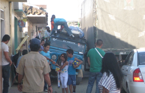 Cuando un conductor infringe una norma de tránsito, o cuando una calle la obstruyen camiones que descargan mercancía, los agentes de policía se encargan de poner orden y realizar los comparendos. El pueblo no cuenta con guardas de tránsito que regulen el tráfico vehicular, y la Inspección de Policía, dependencia de la Alcaldía, regula las normas de tránsito y el transporte en el municipio. Las esquinas del Parque de Bolívar hacen las veces de terminal de transporte y albergan a los camperos, que son el único medio de transporte. El conductor Ramiro Marín reconoce que la gente es prudente y respeta la señalización. “El pueblo es pequeño, no tenemos zonas peatonales y los carros que circulan son pocos. Los que más cometen infracciones son los motociclistas”. La Alcaldía y el Comando de Policía manejan convenios para atender el tránsito: la administración les proporciona combustible, llantas, aceites y lubricantes para los vehículos.