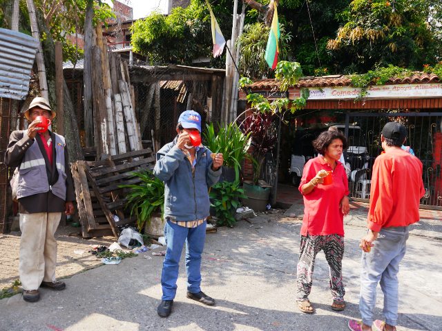 La mayoría de los habitantes de la calle de Chinchiná no usa tapabocas y tampoco se asea las manos, poca atención prestan a las noticias, viven el día a día sin ningún temor; quizás la manera de sobrevivir los ha mantenido alejados del covid-19.