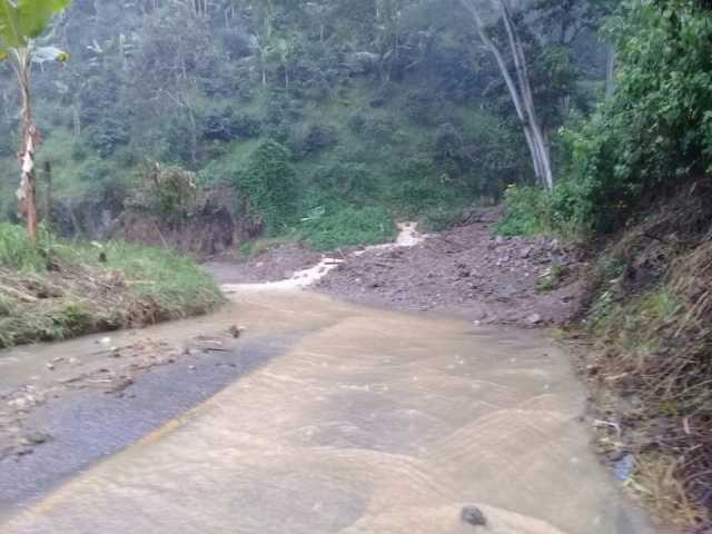 Desbordamiento de la quebrada en el sector El Crucero en la vía Petaqueros- Manzanares.