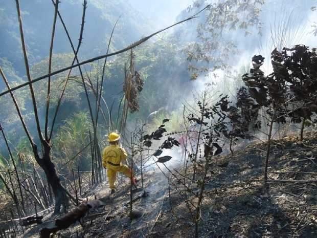Los bomberos se demoraron unas seis horas para apagar la conflagración. El incendio consumió unas seis hectáreas entre café, plátano y maleza.