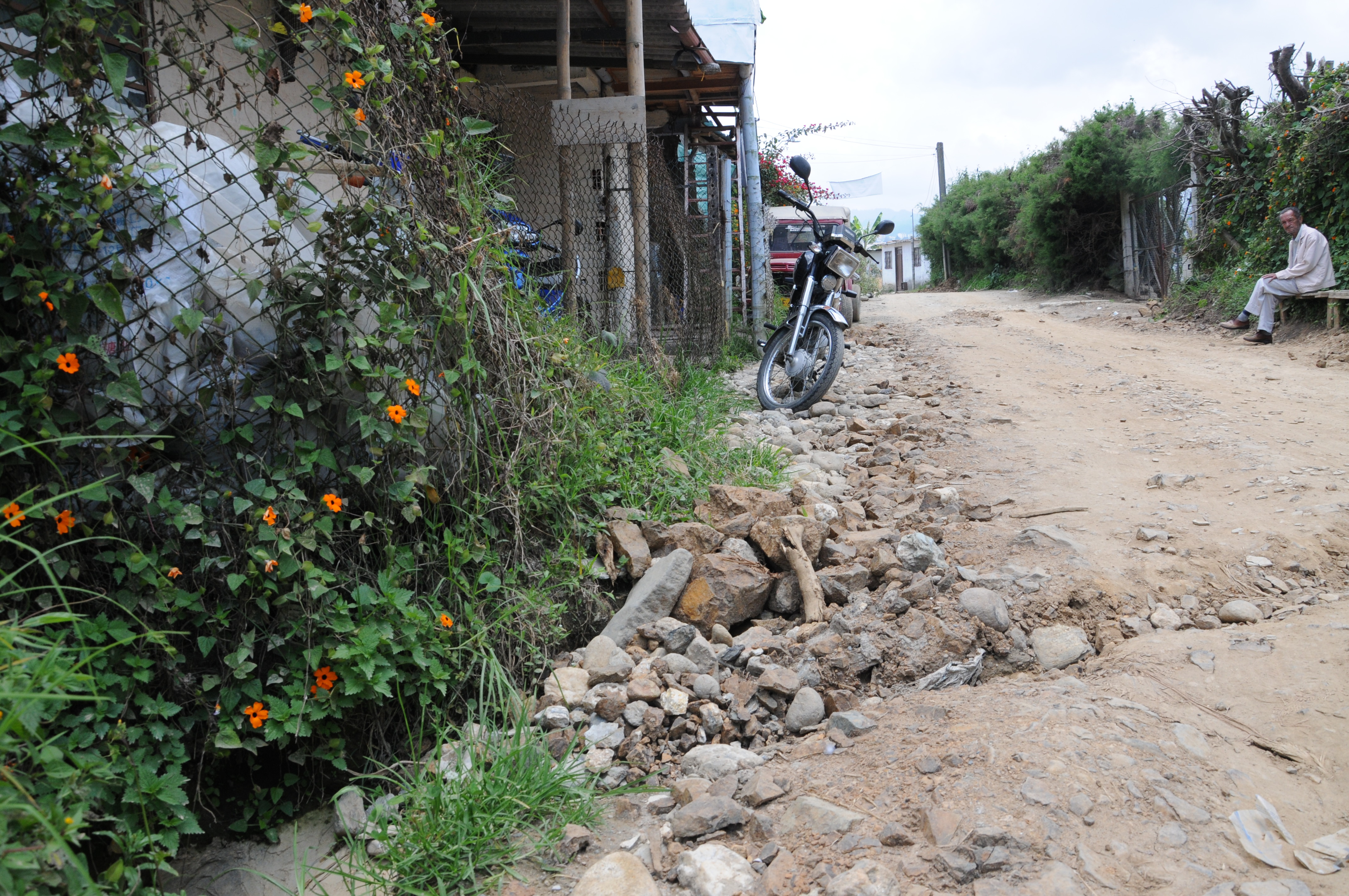 Olga agrega que con las obras del alcantarillado, a la vía no le hicieron nada. Lo que se ve es un camino destapado, sin canalización de aguas por lo que abundan los rotos y los surcos que forman las aguas.