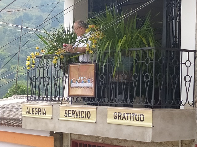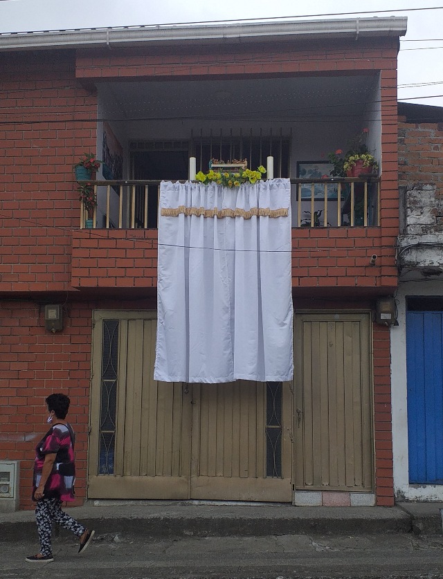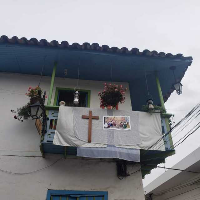 Algunas familias decoraron sus balcones con imágenes alusivas a la Semana Mayor. En el barrio El Mirador, el diácono Gabriel Patiño dio el ejemplo.