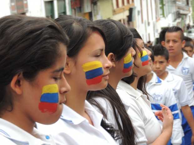 Algunos estudiantes se pintaron en el rostro la bandera de Colombia con motivo a la fecha.