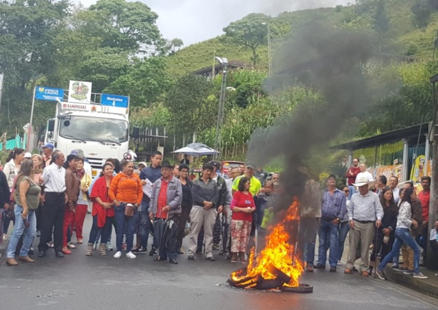 En la tarde de ayer habitantes de Neira realizaron una protesta en la salida a Aranzazu. Reclamaron de nuevo por el alza en las tarifas de acueducto.