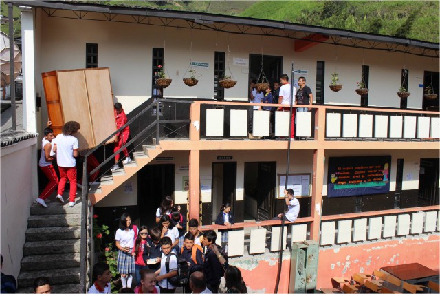 Estudiantes de la Institución Educativa Pensilvania ya ocupan espacios de la Escuela Boyacá, luego de ser evacuados de un bloque de bachillerato del CINOC.