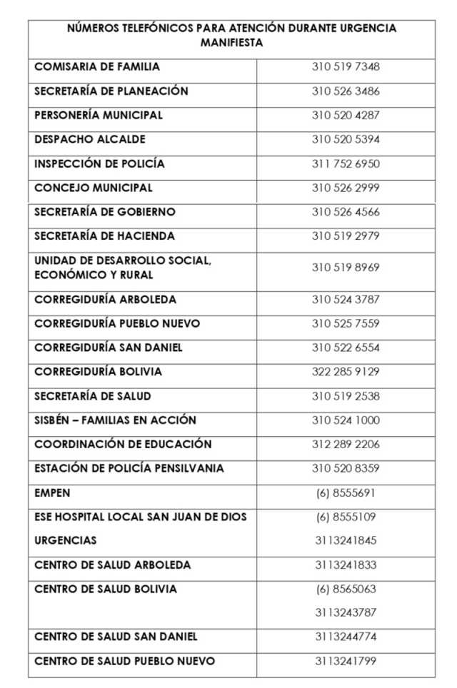 6. Las siguientes líneas telefónicas y de whatsapp serán habilitadas para atender las solicitudes de la comunidad.