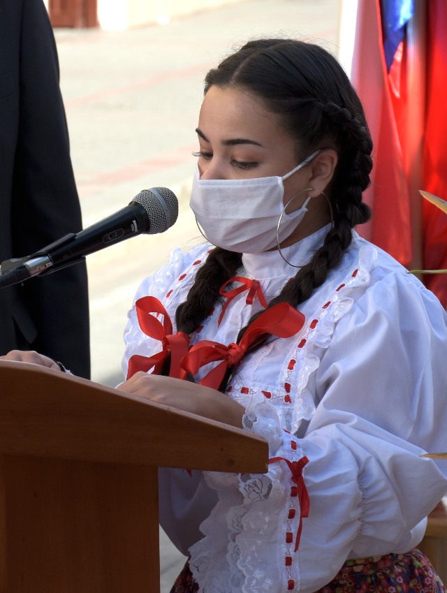 La coordinadora de esta entidad, Astrid Daiana Agudelo, contó la historia del municipio y la niña Sofía López Hincapié (foto) declamó “Oda a Salamina”, de Fernando Mejía Mejía.