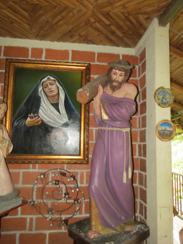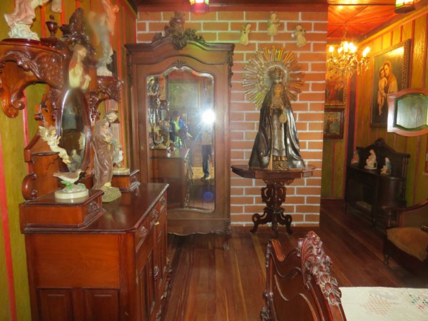 Las imágenes religiosas contrastan con la zona rural en donde está ubicada la casa.