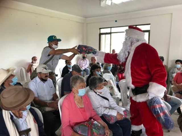 Aranzazu. Gracias a la gestión de Gloria Piedad Serna y de su familia, empresas privadas de Bogotá y Valle del Cauca, se vincularon alegrando la Navidad de los adultos mayores. En la Casa Vicentina, los abuelos después de rezar la Novena con los sacerdotes, recibieron almuerzo, natilla, buñuelos y aguinaldos. El show musical lo donó el artista Fredy Agudelo, residente en Chile, quién puso a bailar a los abuelos. Las Hermanas Vicentinas apoyaron la actividad.
