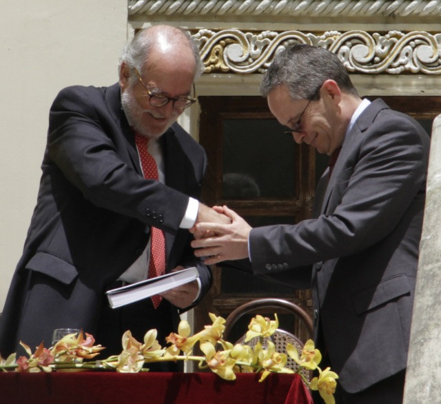 También lo retuvo unos segundos el escritor José Taborda, quien lo saludo, lo felicitó y confesó que durante la suspensión del gobernador tomaba tinto con él todos los días en el club.