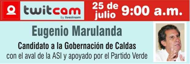 Espere hoy a las 9:00 a.m. en la Twitcam de LA PATRIA.COM al candidato a la Gobernación de Caldas avalado por la ASI y por el Partido Verde, Eugenio Marulanda, donde hablará de sus propuestas. También estará interactuando con el público y contestando preguntas. También se transmitirá en vivo por www.lapatria.com