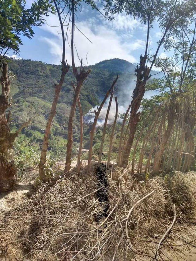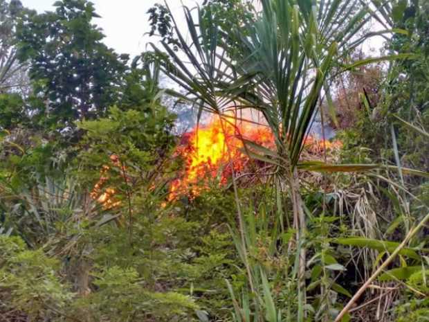 Un incendio forestal consumió aproximadamente 500 metros cuadrados de vegetación en el sector de Aguas Claras en Marmato (Caldas).