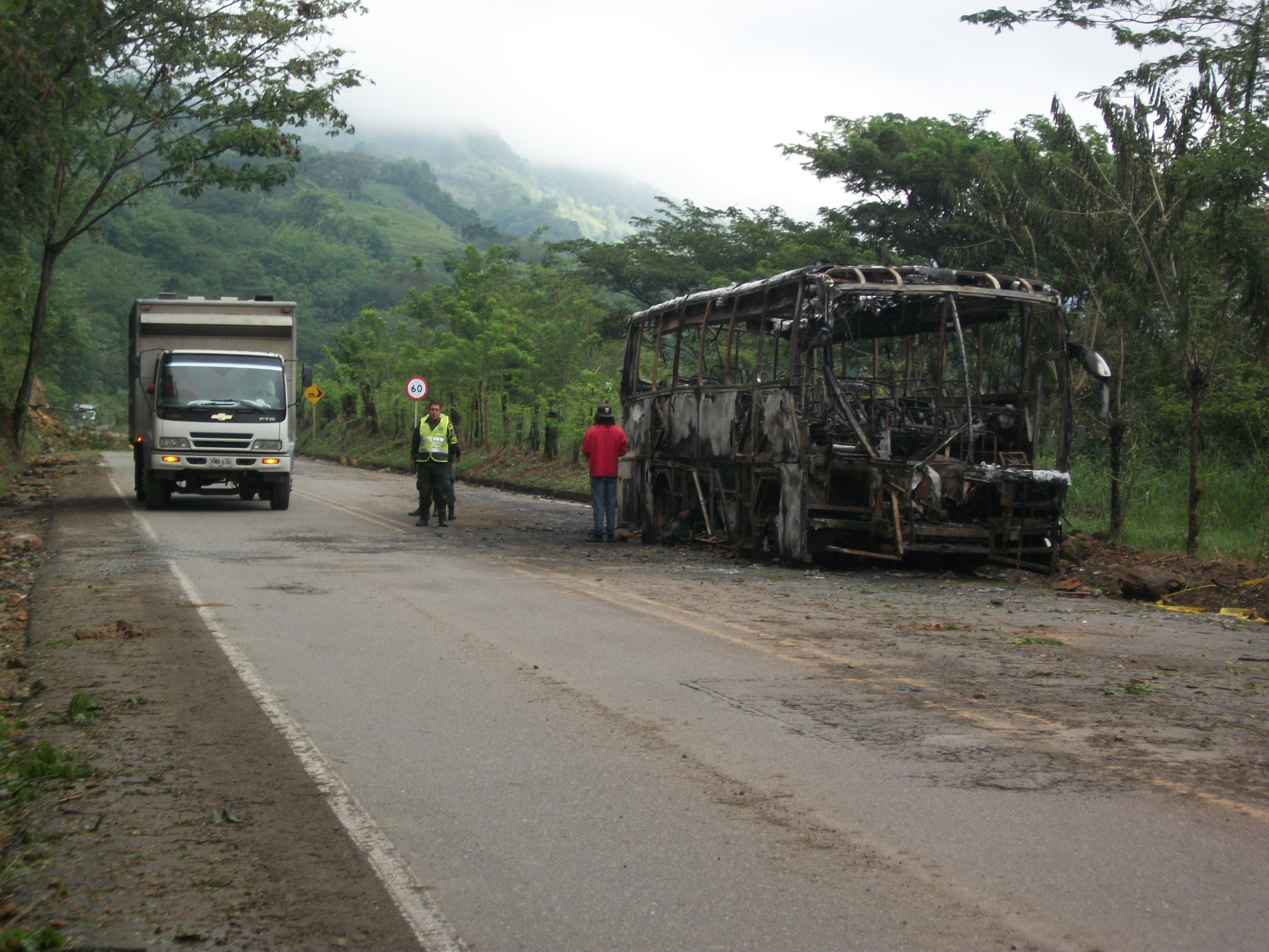 La Policía de Carreteras realiza en estos momentos el levantamiento del bus de la empresa Arauca de placas WBE 675, que fue incinerado ayer. Los indígenas que se concentran en la vereda Agua Salada, realizan el almuerzo y organizan los preparativos para una nueva joranda de protestas.