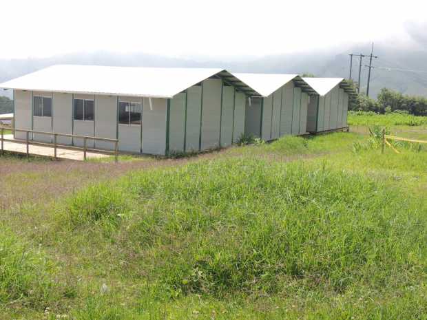 13 fueron las aulas temporales que se dotaron y acondicionaron en Neira con lavamanos y baños. Se construyeron en perfilería metálica y paredes en fibra de madera, pero desde su entrega ya van más de dos meses y siguen tal y como las entregaron en abril. La maleza empieza a apoderarse de ellas.