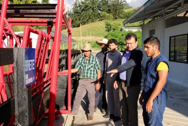 En el área de formación de ganadería del Sena, en Maltería, se invirtieron $500 millones para renovar equipos, tecnología e infraestructura. El director, Rodrigo Giraldo (segundo de der. a izq.) observa trabajos.