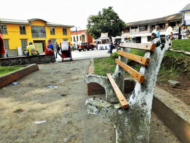 En Villamaría visitan poco el Parque Bolívar, debido al abandono y al mal estado en el que se encuentra.