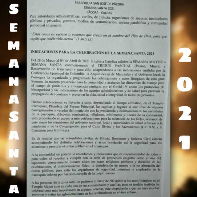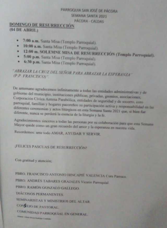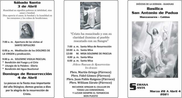 Las celebraciones litúrgicas de Semana Santa se viven en los municipios de Caldas, pese a que algunos tienen restricciones para evitar el contagio por covid-19. La recomendación es a priorizar las medidas de bioseguridad para asistir a los actos religiosos.