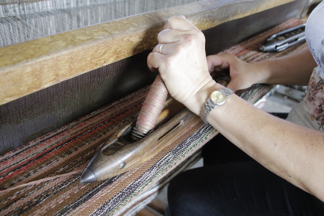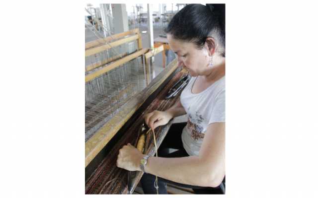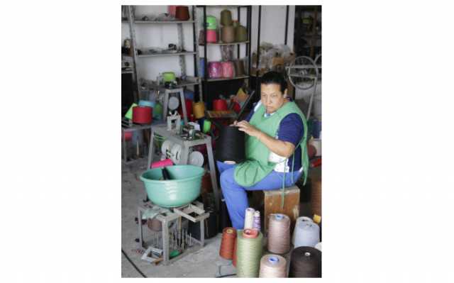 Martha Beatriz Sepúlveda Duque teje una tela de un metro con 20 centímetros tiene un valor de 70 mil pesos.