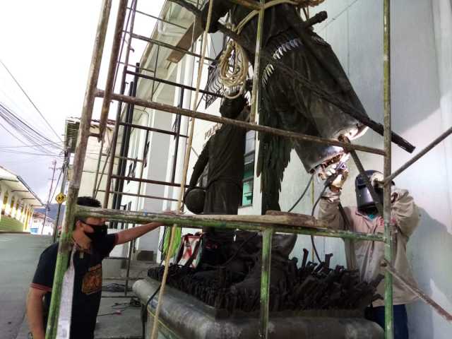 El pasado 3 de noviembre se buscó corregir la falla para dejarlo como era el original. El rostro del policía también sufrirá una transformación. Para su recuperación se utilizó soldadura en acero inoxidable con ejes de acero para que resista.