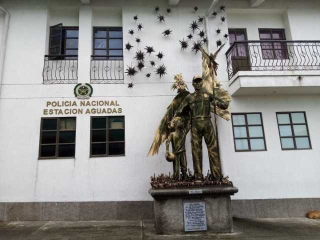 En la Estación de Policía de Aguadas se encuentra el monumento al Policía Guardián, homenaje a todos aquellos hombres y mujeres que sirven al país en sus rincones más apartados.