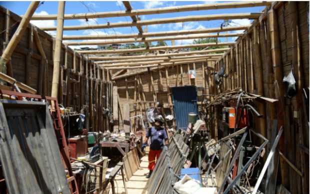 Triste, mientras se tomaba un tinto con su hermano, en un café cercano a lo que quedó de su taller en Salamina, Seir Arcila avalúa en $2 millones los daños que un ventarrón causó en el lugar en el que trabaja soldadura, latonería y pintura desde hace más de 20 años y que aporta el sustento para él y su familia.