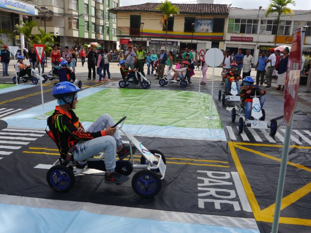 Un costado de la Plaza de Bolívar de Chinchiná se convirtió esta semana en un parque temático para que los niños aprendieran sobre normas de tránsito y cómo conducir de forma pedagógica.