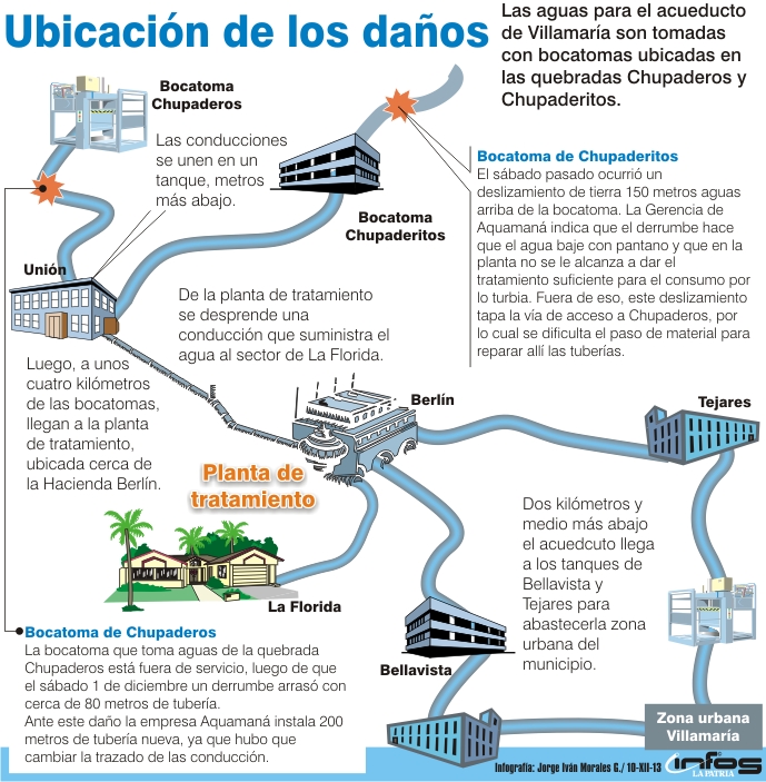 "El problema que hemos tenido con las bocatomas ha sido por las empalizadas que las taponan. En este invierno la dificultad ha sido con derrumbes que afectan las tuberías, estamos haciendo las inversiones para repararlas. No es necesario cambiar todo la tubería, solo en los sitios críticos estamos poniéndola de poliétileno que es más flexible".