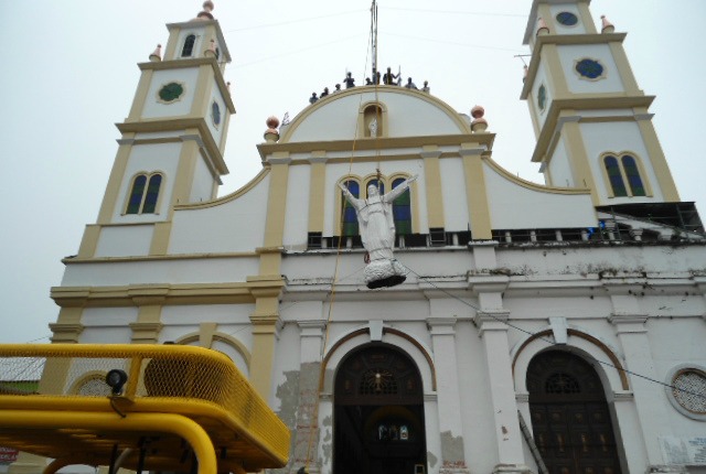 Después de una hora de labores y expectativa, el Cristo fue instalado en medio de las dos torres recientemente reconstruidas. Al final, entre lágrimas y sonrisas, todos suspiraron con alegría y aplaudieron de nuevo. La inauguración de la nueva imagen será el 29 de este mes con una programación especial.