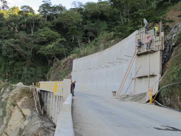 La loza del techo y la prolongación de 12 columnas es lo que le falta al falso túnel en el sector de La Leticia en Aguadas.