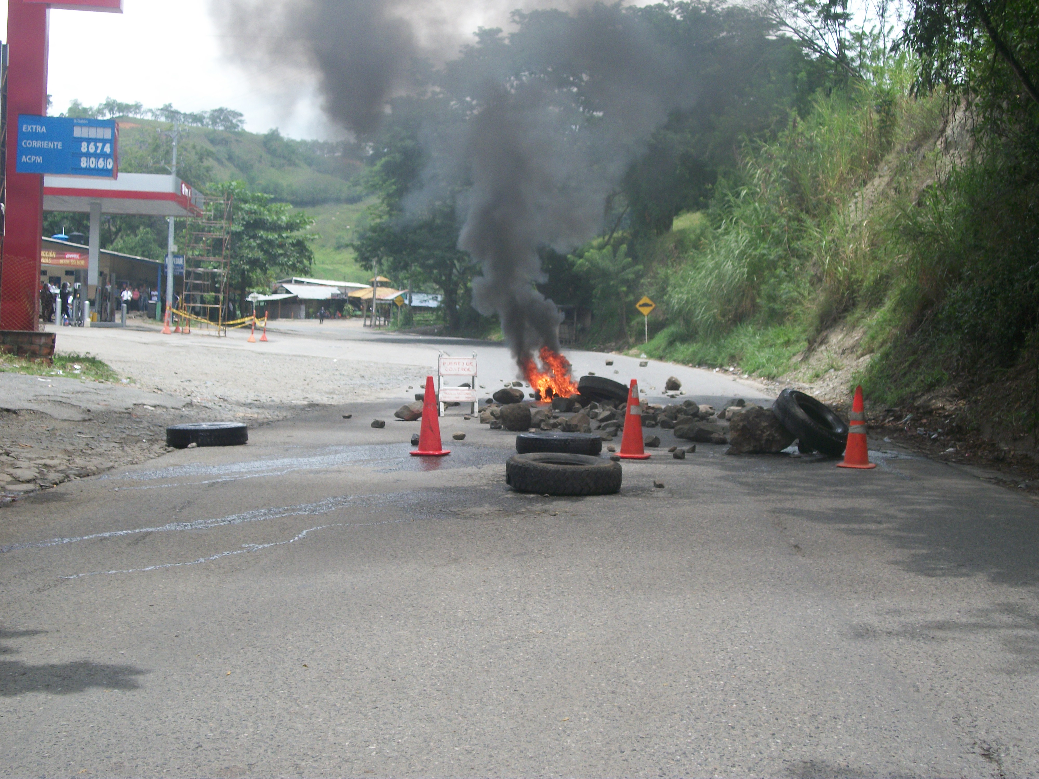 En estos momentos se presentan disturbios y bloqueo en la vía Manizales-Medellín, al paso por el corregimiento de Irra (Risaralda). Hacía unos minutos habían bloqueado la entrada al municipio de Quinchía. Las informaciones preliminares señalan que un grupo de hombres encapuchados hicieron bajar a los pasajeros del bus STP 465, afiliado a la Empresa Arauca, le pincharon las llantas y lo atravesaron. Desde potreros localizados en la parte alta, a un lado de la carretera, los protestantes tiran piedras y explotan dinamita. Además a la entrada de la estación de servicio le prendieron fuego a unas llantas. El corregimiento está bloqueado, también se registra bloqueo a la altura de Tapias. El Esmad de la Policía intenta controlar la situación. El paro agrario comenzó el lunes pasado en Colombia.